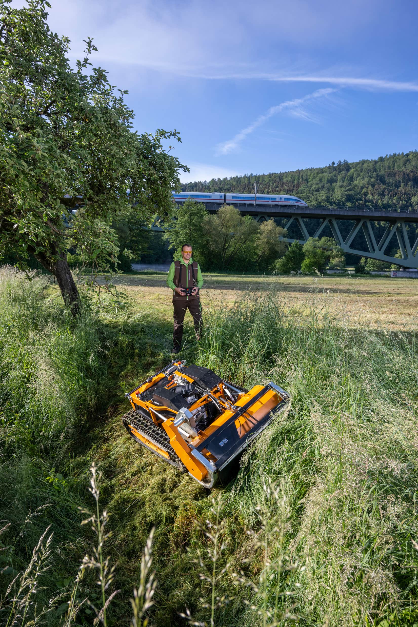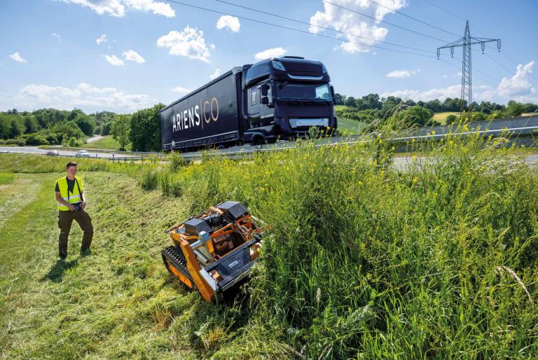Los terraplenes de protección contra el ruido, los terraplenes ferroviarios, las cuencas de retención de aguas pluviales, los parques solares o las plantas de energía eólica a menudo plantean grandes desafíos para los gestores de paisajes y los proveedores de servicios. Las superficies de difícil acceso, intransitables y empinadas deben mantenerse regularmente. El AS 1000 Ovis RC está a la altura de la tarea. Combina todos los requisitos para el uso profesional diario: máximo rendimiento de siega, enorme capacidad de pendiente y fácil manejo.