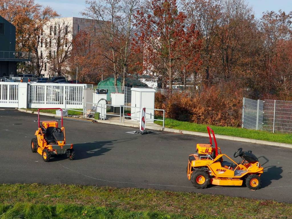 Los taludes pronunciados, el terreno accidentado y los grandes espacios verdes plantean enormes desafíos para las autoridades locales y los proveedores de servicios. En demopark 2023 en Hörselberg cerca de Eisenach, AS-Motor, junto con el Instituto Fraunhofer IVI y Sensor-Technik Wiedemann GmbH (STW), presentó una primicia mundial: una flota de cortacéspedes RC autónomos compuesta por tres AS 940 Sherpa 4WD RC que trabajan en un área definida completamente de forma automática.