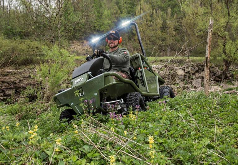 Además de las mejores características del Sherpa, como la tracción total permanente, la cubierta de la cortacésped de mulching y el depósito de 15 litros adecuado para pendientes pronunciadas, la edición especial AS 940 Sherpa 4WD Adventure ofrece una serie de extras extraordinarios. El aspecto especial destaca a primera vista: el acabado verde oliva especial, la inscripción inusual y una placa de "Edición Limitada". Dos faros LED adicionales de 18 vatios se han adjuntado a la barra de protección contra vuelcos estable y plegable para proporcionar una iluminación de largo alcance del área de trabajo, si es necesario. Los faros están protegidos contra el polvo y el agua y fijados con un soporte de aluminio resistente. Otra característica llamativa es la caja de transporte detrás del asiento del conductor con un volumen de 36 litros, ideal para herramientas, ropa de trabajo o alimentos que desee llevar consigo. La caja de transporte está completamente acolchada para proteger su contenido. A pesar de su robusta construcción, tiene un peso muerto bajo y es resistente a salpicaduras, por lo que se puede usar en cualquier condición climática. La caja se puede bloquear con un candado.
