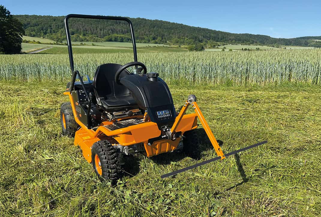 The cutter bar mower for the AS 600 MultiPro is one of the most environmentally friendly mowing technologies available. Unlike rotary or flail mowers, it cuts grass at the base without shredding it, allowing insects and small animals to escape unharmed. This makes it ideal for hay production, flower-rich meadows, and conservation areas, where seed preservation is essential for biodiversity.