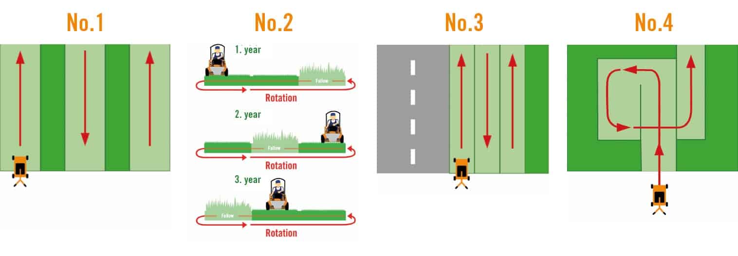 - Old grass strips of 10 x 50 m should be left intact and mowed the following year.