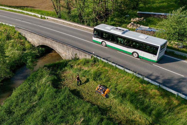 Remote controlled devices make the mowing of extreme slopes possible. This technology also allows the operator to mow at a safe distance from dust, wasps, ticks and other hazards. -