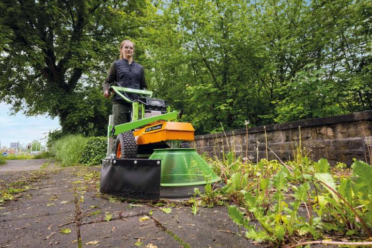 Cobblestones and uneven paved areas can be treated for weeds, without the use of chemicals, using mechanical methods. The agile AS 30 is designed for work close to edges, water inlet channels, manholes and on traffic islands with posts and signs. -