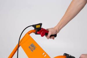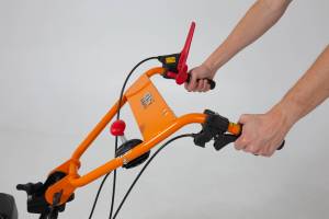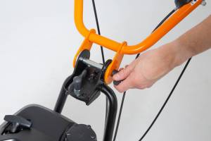 Para una limpieza óptima de los bordes, la inclinación lateral de la máquina puede ajustarse cómodamente en tres posiciones utilizando la palanca de funcionamiento.