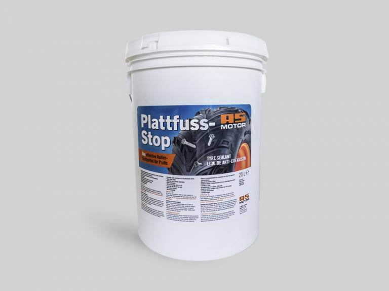 Este problema puede prevenirse con el nuevo sellador de neumáticos “Flat-Stop” de AS-Motor, que reduce considerablemente la pérdida de presión lenta y la aparición de neumáticos desinflados. El sellador de neumáticos tiene un efecto inmediato en los pinchazos y un efecto permanente en las espinas clavadas en el neumático.