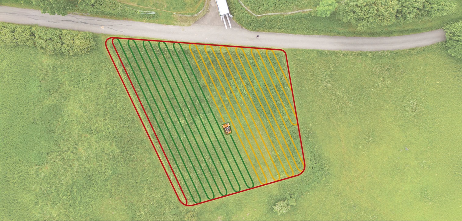 una flota de tres AS 940 Sherpa 4WD RC cortando de manera autónoma en un área definida, controlada y monitorizada a través del software de control helyOS®.